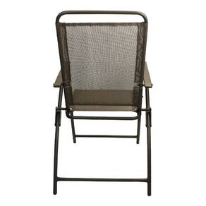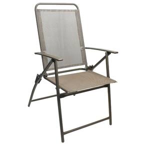O Conjunto conta com uma mesa quadrada com tampo de vidro, quatro cadeiras dobráveis e um guarda-sol.
