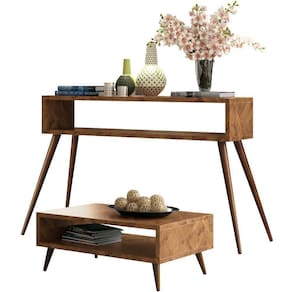 Kit Aparador Com Mesa De Centro Lara B01 Pés Palito - MARROM CHOCOLATE