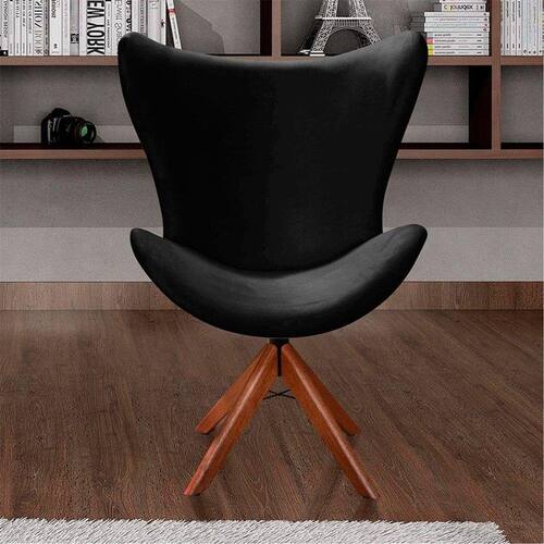 Poltrona Decorativa Alice Base Giratória Madeira Preto - Bella Decor