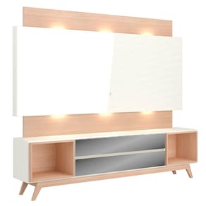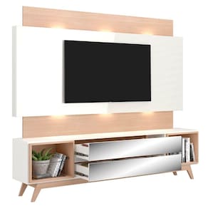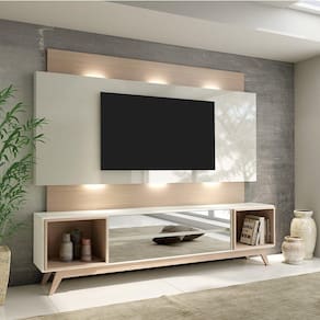 Rack Com Painel Com Led e 2 Gavetas Espelhadas Off White Natural - Dalla Costa - Branco