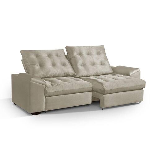 Sofá 3 Lugares Retrátil E Reclinável Estilo Veludo - BEGE