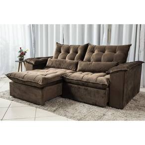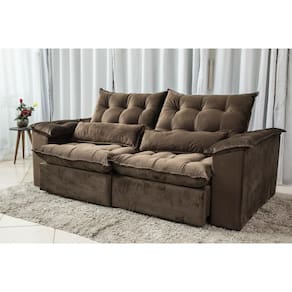 Sofá Retrátil e Reclinável Ipanema 1,80m em Tecido Veludão C/Pillow nos Braços - Montagem Inclusa - Marrom
