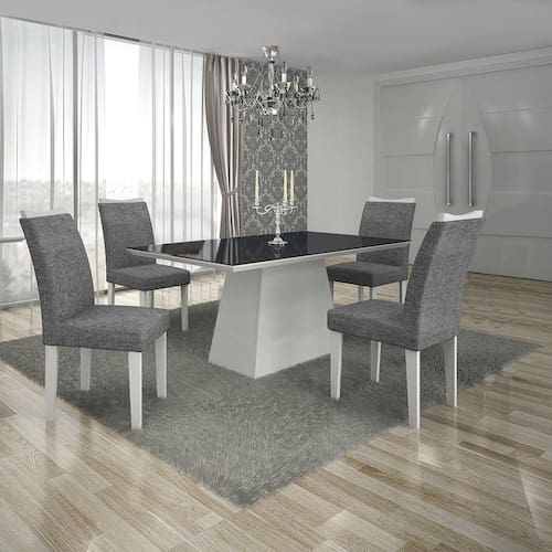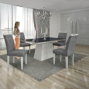 Mesa em Mdf pé com, tampo chanfrado nas bordas vidro temperado e serigrafado. Cadeira madeira Mdf 25 mm, assento espuma D20 e encosto D18.