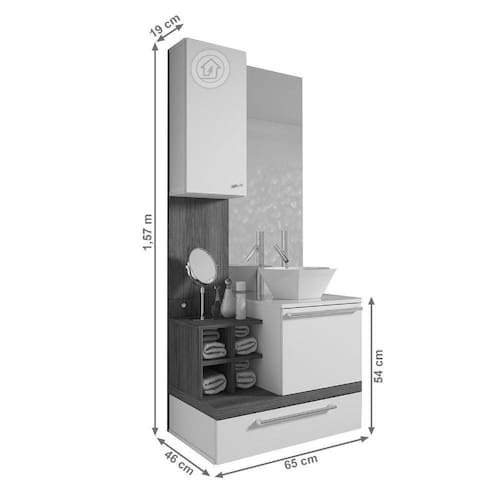 Gabinete para Banheiro com Espelheira Ravenna Celta Móveis (Não acompanha cuba e torneira)