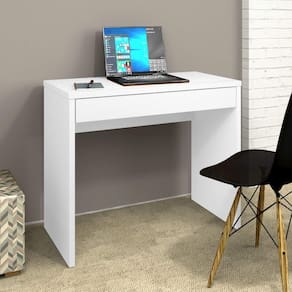 A Escrivaninha Slim é perfeita para aproveitar o espaço disponível e deixar seu ambiente de estudos ou trabalho mais charmoso. Seu design permite harmonia com outros móveis do ambiente independentemente do tipo de decoração. Destaque em suas características, as laterais e o tampo produzidos com MDP de 25mm que proporcionam maior resistência e estabilidade, também tem uma gaveta com corrediças telescópicas que proporcionam maior amplitude de abertura. Produzida com painéis de madeira reflorestada e com certificado FSC a Escrivaninha Slim reúne beleza, praticidade e qualidade. Acabamento: Impressão Acabamento da Gaveta: Impressão : 75 cm : 75 cm Ambiente: Escritório Complexidade da Montagem: Baixa: pode ser montado por uma pessoa sozinha Cr: Branco Cr: Branco Cr Interna: Branco Cr Predominante: Branco Escala de Brilho: Fosco Escala de Brilho da Gaveta: Fosco Estilo: Moderno Formato: Retangular Gaveta com Chave: Não Itens Inclusos: 1 Escrivaninha e Manual de Montagem. : 90 cm : 90 cm Linha ou Coleção: Slim Material da Gaveta: MDP Material Principal: MDP Necessita Montagem: Sim Peso: 22 kg Peso Máximo por Gaveta: 5 kg Possui Gavetas: 01 Possui Gavetas: 01 Possui Passa Cabos: Não Possui Pés: Não Possui Porta Objetos: Não Possui Portas: Não Possui Prateleiras: Não Possui Suporte para Teclado: Não : 44,5 cm : 44,5 cm Recomendações de Uso, Manutenção e Limpeza: Limpar com flanela ou pano macio seco, não utilizar produtos abrasivos, desengordurantes, álcool ou qualquer outro produto químico. Não expor o produto diretamente à luz solar e à umidade. Sapatas Niveladoras: Não Sistema de Montagem: Parafusos auto atarraxantes, cola, cavilhas, girofix. Suporta até (kg): 25 kg Tamanho: Tipo de Corrediça da Gaveta: Metálica Telescópica Tipo de Puxador da Gaveta: Embutido