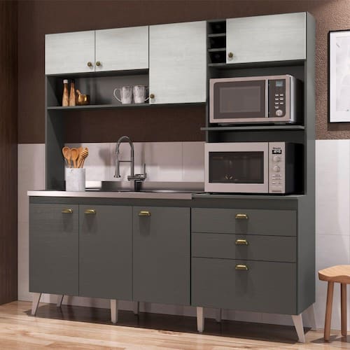 Cozinha Compacta Donna Casamia 8 Portas 2 Gavetas - CINZA