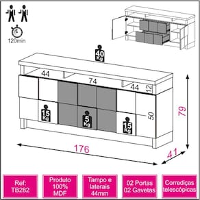 Balcão Buffet 2 Portas 2 Gavetas 100% Mdf Tb282 Grafite - Dalla Costa - Preto