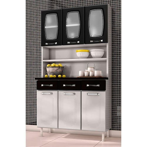 Kit Cozinha 3 Portas Vidro 3 Gavetas Telasul Novita, deixa sua cozinha mais charmosa e elegante!
