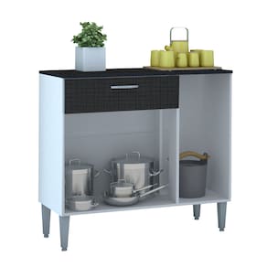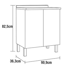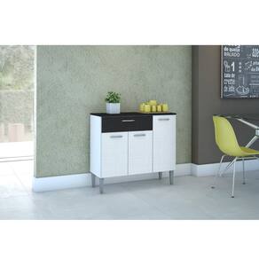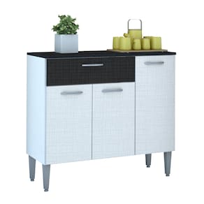 Produzido em MDP, com madeira reconstituída que respeita o meio ambiente, ele é composto de três portas e uma ampla gaveta onde são utilizadas dobradiças e corrediças metálicas. Além disso, acompanha tampo que pode ser utilizado como bancada para eletro portáteis ou outros utensílios e puxadores ergonômicos em plástico resistente com acabamento cinza metalizado.
