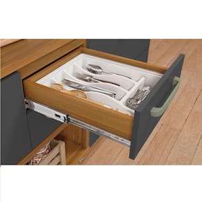 Corrediça Telescópica Abertura Integral: Robusta e com três estágios, esta corrediça é ideal para o uso diário, facilitando o acesso aos utensílios.