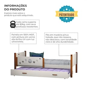 Painéis 100% MDF Pintura em verniz alto brilho UV com luz ultravioleta Pés em madeira maciça pinus tratada - não resseca, não descasca, com tonalidade clara e de alta durabilidade Parafusos resistentes Suporta até 80kg (cada cama)