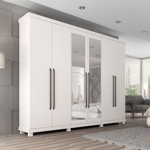 Guarda-Roupa Casal Panan 6 Portas 8 Gavetas Marcia Características: Roupeiro Panan marcia 6 portas 8 gavetas 06 portas, espelho e uma divisão interna encantadora 08 gavetas, que proporcionam excelente alocação das roupas Cabideiros e suportes em alumínio garantem maior resistência Maleiro muito espaçoso para acomodar malas, colchas ou bolsas Kit pés que conferem a beleza e facilitam a beleza. Dimensões: Altura: 240 cm Largura: 267 cm Profundidade: 56.1 cm Garantia do fornecedor de 3 meses.