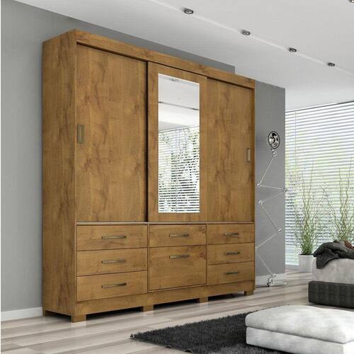 Organize e decore seu quarto com o Guarda-roupas Luíza 3 portas e 7 gavetas da Panan. Características: 03 portas de correr, espelho e uma divisão interna encantadora 07 gavetas grandes com puxadores que conferem um designe diferenciado Cabideiros e suportes em aluminio, garantem maior resistência e mais peças de roupas 03 Maleiros, muito mais espaço para acomodar malas, colchas ou bolsas Kit pés que conferem a beleza e facilitam a beleza Dimensões: Altura: 222 cm Largura: 192,6 cm Profundidade: 51,4 cm Peso: 120,7 kg Garantia do fornecedor de 3 meses.