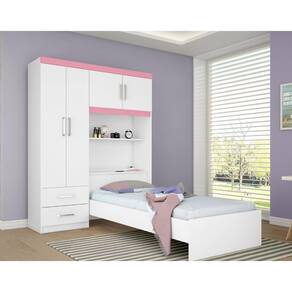 Roupeiro com Cama Solteiro Dueto Branco/Rosa Flex - Demóbile