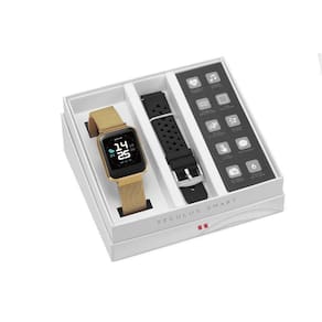 É resistente à água e possui duas pulseiras, uma esportiva de silicone com dupla injeção e uma em malha de aço com fecho magnético exclusivo e de fácil ajuste.