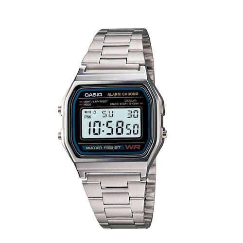 Características: Linha: Vintage Modelo: A158WA-1DF Fabricante: Casio Marca: Casio Material da Pulseira: Aço Material da Caixa: Resina Funções: Indicador 12/24h Cor da Caixa: Prata Design do Relógio: Fashion Tipo de Relógio: Digital Cor do Mostrador: Preto Cor da Pulseira: Prata Tipo de Fecho: Pressão Formato da Caixa: Retangular