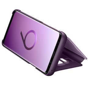 Desfrute da visão completa da Infinity Display com todo conforto no Galaxy S9 na capa e suporte Clear View. Se você quiser descansar as mãos durante um filme, basta dobrar a capa para trás para manter o telefone na vertical e obter um ângulo otimizado de visão em paisagem.