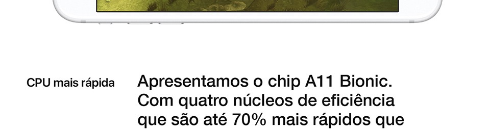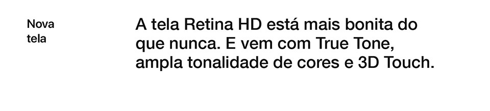 Sua nova tela Retina HD de 4,7 polegadas agora conta com tecnologia como True Tone, ampla tonalidade de cores e 3D Touch. A diferença você logo percebe em imagens que se aproximam da realidade, com tonalidade de cores definidas, cores vivas e alto contraste.