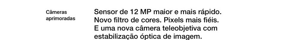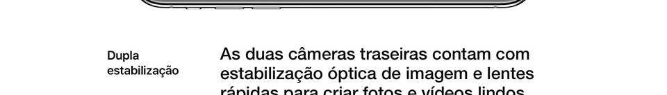 Já na parte de traz, ele conta com câmera dupla de 12 MP com estabilização óptica de imagem, uma com lente grande-angular de abertura ƒ/1.8 e outra teleobjetiva com abertura de ƒ/2.4. Juntas você vai conseguir registrar surpreendentes fotos e com recursos impressionantes.