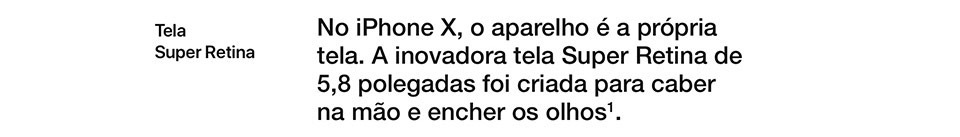 O iPhone X tem tela maior, a inovadora tela Super Retina de 5,8 polegadas com tecnologia OLED praticamente ocupa toda a frente do aparelho, e não conta mais com o clássico botão Home, agora é só deslizar o dedo para acessar a tela de Início.