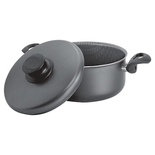 A Caçarola Tramontina Paris 20520628 Preta - 28cm é leve e super prática. Use a sua caçarola com revestimento Starflon sempre em fogo baixo ou médio para reter o valor nutritivo dos alimentos e conservar o antiaderente. Além disso, possui alças em banquelite antitérmico.