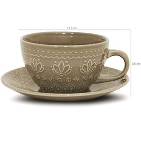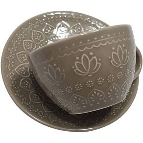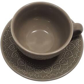 Xícara Corona Com Pires Chá Café 270ml De Cerâmica Cinza