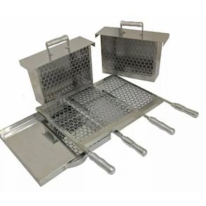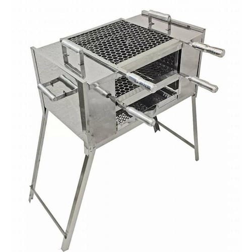 Acompanha Duas grelhas de inox 35x40 cm Duas gavetas de carvão Bandeja para armazenar a gordura
