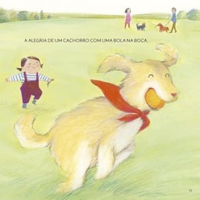 A alegria de não ter nada para fazer, a alegria de uma mudança, a alegria de poder dizer: é nosso… Quantas alegrias cabem no seu dia? Cenas corriqueiras da vida de cada um de nós ganham um valor especial na obra do autor e editor nova-iorquino Bruce Handy e da ilustradora sul-coreana Hyewon Yum. “A frustração de ouvir... NÃO NÃO NÃO. A alegria de dizer... NÃO! (De vez em quando.); A dor de uma perda. A alegria de uma lembrança. (E a tristeza também.)”. Sensações e sentimentos ambíguos, despertados por acontecimentos aparentemente banais, são expressos com sensibilidade e delicadeza nessa narrativa que conduz o leitor por um delicioso dia na vida de meninas, meninos, cachorros, gatos e passarinhos. Indicado para leitores a partir de 4 anos.