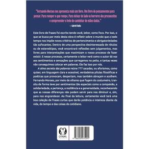“Fernando Moraes nos apresenta mais um livro. Um livro de pensamentos para pensar. Para romper o que rompe. Para deixar de lado os horrores dos preconceitos e compreender o belo do caminhar de mãos dadas.” — Gabriel Chalita Este livro de frases foi escrito tendo você, leitor, como foco. Por isso, o que se busca por meio desta obra é refletir sobre o mundo que a todo tempo nos impõe novos critérios de pertencimento e obrigatoriedades tão sufocantes. Dentro de uma perspectiva desinteressada de rótulos ou de estereótipos, você encontrará reflexões sem julgamentos, mas livres para interpretações que maximizam o nosso processo de fazer existir. E nesse processo, certamente o leitor verá como o autor dá voz aos sentimentos e sensações que carregamos no peito, e tantas vezes não conseguimos colocar em palavras. Ele faz isso por nós. A alma secreta das palavras reúne 777 sacadas, ou aforismos, como quiser, em linguagem clara e acessível, verdadeiras pílulas filosóficas e poéticas que provocam, despertam, mas também abraçam e acolhem. Fernando Moraes, por meio de olhares que fogem do costumeiro, transita de forma leve por sentimentos tão especiais como a compaixão, a solidariedade, a pertença, a resiliência e a generosidade, reconhecendo que as nossas diferenças não podem servir para nos diminuir e, sim, para nos engrandecer. Ao final da leitura, certamente você terá uma boa coleção de frases curtas que darão potência e inteireza diante da vida, do tempo e das coisas do cotidiano.