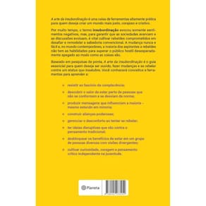 A arte da insubordinação é uma caixa de ferramentas altamente prática para quem deseja criar um mundo mais justo, corajoso e criativo. Por muito tempo, o termo insubordinação evocou somente sentimentos negativos, mas, para garantir que as sociedades avancem e as discussões evoluam, é vital cultivar rebeldes comprometidos em desafiar e remodelar a sabedoria convencional. A mudança nunca e fácil e, no mundo contemporâneo, a maioria dos aspirantes a rebeldes não tem as habilidades para superar o público hostil desesperadamente apegado ao modo como as coisas são. Baseado em pesquisas de ponta, A arte da insubordinação é o guia essencial para quem deseja ser ouvido, fazer mudanças e se rebelar contra um status quo insalubre. Você conhecerá conceitos e ferramentas para aprender a: - resistir ao fascínio da complacência; - descobrir o valor de estar perto de pessoas que não se conformam e se desviam da norma; - produzir mensagens que influenciam a maioria – mesmo estando em minoria; - construir alianças poderosas; - gerenciar o desconforto ao tentar se rebelar; - ter ideias disruptivas que vão contra o pensamento tradicional; - desbloquear os benefícios de estar em um grupo de pessoas diversas com visões divergentes; - cultivar curiosidade, coragem e pensamento crítico independente na juventude.