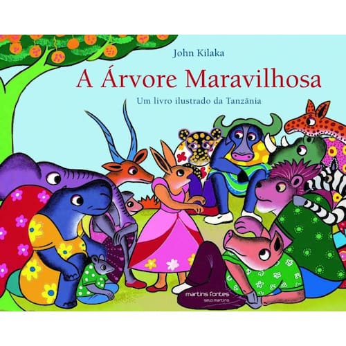 Por muito tempo, pequenos e grandes animais viveram unidos e felizes. Mas faltou a chuva e a terra ficou tão seca que eles não tinham mais o que comer. Foi quando encontraram uma árvore enorme, que, mesmo sem chuvas, estava carregada de frutas maravi lhosas. Todas elas pareciam estar bem suculentas e exalavam um perfume delicioso, porém não caíam no chão de jeito nenhum. Nem mesmo os animais grandes conseguiam colhê-las. Todos chacoalhavam e sacudiam a grande árvore com muita força, mas não havi a meio de cair uma frutinha sequer. A cada dia mais famintos, os animais se reuniram para tentar chegar a uma solução. Por sorte, a pequena coelha teve uma boa ideia. Uma história tradicional africana recontada e ilustrada com cores vibrantes - no e stilo tingatinga - pelo artista John Kilaka, da Tanzânia.