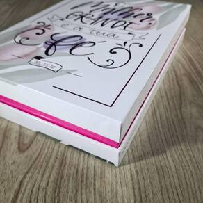 Títulos em Hand Lettering 15 letterings em Salmos Espaço para anotações e ilustrações Referencia cruzadas 6500 notas de estudo 12 planos de leitura Índice temático Fatos curiosos sobre mulheres As mulheres mencionadas em cada livro Dicionario Concordância tematicaAlém de tudo isso, ela contém 2 presentes, sendo um quadro e uma caixa organizadora