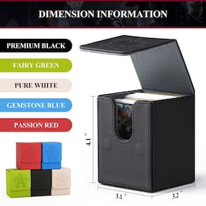 Blue,Green,White - ?Pacote com 5 caixas de cartas de ótimo valor?Cores especialmente selecionadas, preto premium, branco puro, verde fada, azul pedra preciosa, vermelho paixão. Você receberá 5 caixas de baralho, a caixa cabe em um baralho Commander de 100 cartas de manga única, quantidade suficiente para sua coleção de cartas. - ?Melhores detalhes?A costura da caixa de deck mtg é reforçada para evitar rasgos. Padrões externos bem projetados e tampa de travamento automático invisível são cheios de personalidade legal e extravagante, que até mesmo se mantêm seguros se cair acidentalmente. - ?Proteção total?O exterior da caixa de baralho MTG 100 é feito de couro PU e material interior de veludo macio, que é capaz de suportar forte pressão enquanto protege seus cartões. Escolha perfeita para mover seu deck com você. - ?Coleção de cartas?: os estojos de cartas consertam diferentes jogos de tabuleiro, compatíveis com mtg commander deck, yugioh deck, HeroQuest, Pandemic e outros jogos de colecionar cartas. É a escolha perfeita para armazenamento e coleta de cartões. - ?Presente ideal?Bem construída e generosamente espaçosa, a caixa de baralho pode acomodar confortavelmente seu baralho favorito Magic Commander/EDH e a caixa de baralho de cartas TCGUARD é um bom presente para você, sua família e amigos.