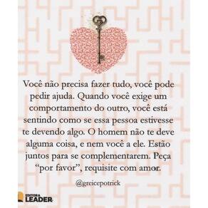 Cartas: A Chave Mestra Nessa caixinha você encontrará 100 cartas com poderosas frases para a condução de um processo sensorial, de sentir o que precisa vir de resposta para você, ou para o seu momento atual dentro de um relacionamento, ou na busca de um. Essas cartas podem ser usadas por profissio nais, ou por qualquer pessoa, que goste de acessar a sua intuição através de mensagens, como se fosse um oráculo. Cada frase carrega um potencial diálogo com o inconsciente e, portanto, fará sentido para todos que estiverem envolvidos. Você pode criar o seu método de uso das cartas, e usá-las inclusive em sessões de terapia, voltadas para relacionamento. *Sugestão de uso, presente no produto.