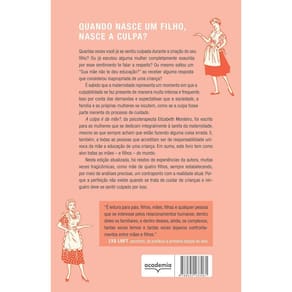 EM NOVA EDIÇÃO REVISTA E ATUALIZADA, UM LIVRO PARA TODAS AS MÃES QUE ESTÃO CANSADAS DE LEVAR A CULPA POR TUDO Quantas vezes você já se sentiu culpada durante a criação do seu filho? Ou julgou alguma mãe nessa tarefa tão árdua e incompreendida? É sabido que a maternidade representa um momento em que a culpabilidade se faz presente de maneira muito intensa e frequente. Isso por conta das demandas e expectativas que a sociedade, a família e as próprias mulheres se incutem, como se a culpa fosse parte inerente do processo de cuidado. A culpa é da mãe?, da psicoterapeuta Elizabeth Monteiro, foi escrito para as mulheres que se dedicam integralmente à tarefa da maternidade, mesmo as que sempre acham que estão fazendo alguma coisa errada. E, também, a todas as pessoas que acreditam ser de responsabilidade unívoca da mãe a educação de uma criança. Em suma, este livro tem como alvo todas as mães – e filhos – do mundo. Com relatos emocionantes e muitas vezes cômicos, a autora mostra a dor e a delícia da maternidade e nos ajuda a perceber que a perfeição não existe quando se trata de cuidar de crianças e ninguém deve se sentir culpado por isso.