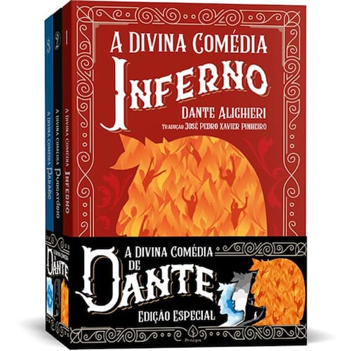 A Divina Comédia é um poema clássico da literatura italiana e mundial com características épica e teológica, escrito por Dante Alighieri no século XIV período renascentista e dividido em três partes: o Inferno, o Purgatório e o Paraíso. São cem can tos protagonizados pelo próprio Dante em companhia do poeta romano Virgílio , que percorreu uma jornada espiritual pelos três reinos além-túmulo.