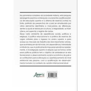No panorama complexo da sociedade indiana, esta pesquisa abrangente examina a interseção crucial entre a política pública de educação superior e o sistema de reservas (cotas) na Índia, partindo da perspectiva de o país ser emoldurado por vários elementos identitários e marcadores de diferenças, dentre os quais se destacam a cultura, a religiosidade, as tradições e, em especial, o regime de castas. Nesse vasto ambiente de experiências sociais, políticas e religiosas, a política educacional e a política de reservas de vagas voltadas para o ingresso no ensino superior e para acesso ao mercado de trabalho são dois importantes vetores, que se entrelaçam de tal modo, em dependência, intensidade e influência, que é praticamente impossível estudá-los isoladamente. A investigação quanto à relação que se formou entre essas políticas públicas tem o objetivo de estabelecer se elas favoreceram o desenvolvimento social e econômico do país e se contribuíram para a elevação e o aperfeiçoamento do nível existencial das pessoas, com a qualificação do desenvolvimento humano no contexto do cenário internacional atual.
