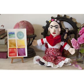 Frida Kahlo era tão diferente de todas as outras em tantos aspectos, que não temos certeza se ela já brincou com bonecas quando era criança. No entanto, nós transformamos Frida em uma boneca que acreditamos capturar seu sprit artístico e flare para a vida. A Frida Kahlo Little Thinker Doll tem cerca de 11 polegadas de altura e usa uma roupa mexicana tradicional, completa com saia, blusa, cachecol e até mesmo suas flores de marca registrada em seu cabelo. Ela também tem uma expressão muito intensa em seu rosto que, se tivéssemos que traduzir, estaria dizendo algo como: "O que, você não gosta das minhas pinturas? Eu não poderia me importar menos.