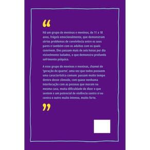 Escrito numa linguagem simples e com fundamento coerente e consistente, A geração do quarto discorre sobre questões fundamentais para se pensar a saúde mental e emocional dos jovens e adolescentes brasileiros.   Hugo Monteiro Ferreira é professor da Universidade Federal Rural de Pernambuco e coordenador do Núcleo do Cuidado Humano e do Grupo de Estudos de Transdisciplinaridade da Infância e da Juventude (GETIJ/UFRPE). Especializado na área da saúde mental e emocional de crianças, adolescentes e jovens, este seu livro é o resultado de uma pesquisa com milhares de jovens brasileiros, em várias capitais do país, e aponta para um quadro preocupante de intenso sofrimento dos jovens diante da realidade brasileira, das novas formas de socialização e das dores de crescimento em nossa sociedade. Há um grupo de meninas e meninos, de 11 a 18 anos, frágeis emocionalmente, que demonstram sérios problemas de convivência entre os seus pares e também com os adultos com os quais convivem. Eles passam mais de seis horas por dia visivelmente isolados, o que demonstra profundo sofrimento psíquico. A esse grupo de meninos e meninas, chamei de “geração do quarto”, uma vez que todos possuem uma característica comum: passam muito tempo dentro desse cômodo, com quase nenhuma interlocução com as pessoas que moram na mesma casa, muita dificuldade de dizer o que sentem e um potencial de violência contra si ou contra o outro muito intenso, muito forte. Um ótimo retrato da juventude contemporânea no Brasil, A geração do quarto é leitura indispensável para pais, mães, professores, cuidadores, terapeutas e todos que de alguma forma convivem com crianças e jovens. Na orelha do livro, Carlos Henrique Aragão Neto, psicólogo, mestre em Antropologia e doutor em Psicologia e Cultura, afirma: “Após ter ouvido, por meio de questionários, entrevistas e grupos de discussão, cerca de 3.115 pessoas entre 11 e 18 anos de idade, de cinco capitais brasileiras, Hugo Monteiro Ferreira mostra como a condição socioemocional de crianças e adolescentes é tema dos mais urgentes, merecendo total atenção. A geração do quarto, matéria-prima dos estudos e das pesquisas de Hugo, mantém-se ‘isolada’ em seus claustros domiciliares, fazendo uso excessivo da tecnologia, dormindo mal, sem a prática regular de esportes, com sérios comprometimentos na socialização e na linguagem, por vezes apartada do contato com a natureza. Assuntos como comportamentos autodestrutivos, bullying, cyberbullying e psicopatologias estão presentes neste livro. Como funcionam as mídias para essas crianças e adolescentes? O que fazem os governos em relação a eles? Como agem as escolas? E o que é realmente mais relevante para a vida de nossos filhos?” “Hugo entende que crianças e adolescentes nos ensinam, ainda que com o sofrimento da mente e do corpo, que o desamor causa adoecimento, gera sofrimento e provoca destruição; e também nos alertam para a relevância de práticas compassivas, empáticas, compreensivas, cuidadosas”, diz Humberto da Silva Miranda, doutor em História das Infâncias, no prefácio do livro. "