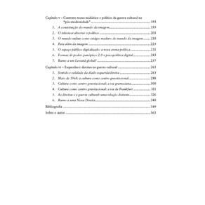"Desde muito tempo a cultura parece ser um tema das esquerdas. Nelas ressoam nomes como Antonio Gramsci, e se destacam escolas como a de Frankfurt. Nesta última perscruta-se a microfísica do poder, com Michel Foucault à frente, e promovem-se estratégias hegemônicas com os favores teóricos de Ernesto Laclau e Chantal Mouffe. Nelas fala-se de revoluções culturais, de desconstrução, de \"políticas identitárias\", de \"interseccionalidade\", de sexo, gênero, raça, etnia, opressores e oprimidos, cada vez mais definidos pela cultura em detrimento da centralidade que a economia já teve no discurso marxista. Porque a cultura, há várias décadas, é sem dúvida o campo dos antagonismos políticos favoritos da esquerda hegemônica. Desde muito menos tempo, porém, a cultura começou a entrar no discurso das direitas. Especificamente, a noção de \"guerra cultural\" está hoje na boca de libertários antiprogressistas, conservadores, tradicionalistas e patriotas. Todos falam hoje de \"guerra cultural\". Mas, até o momento, ninguém especificou muito bem o que esse termo significa. E sem essa precisão teórica, é difícil que isso signifique algo realmente importante na prática. Este livro constitui um esforço para enfrentar essa tarefa.\" Ean: 9788595072015