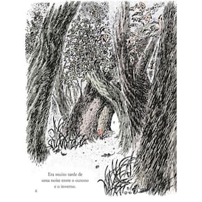 Mo está inquieto na cama e não consegue dormir. Uma luz misteriosa, que parece sorrir para ele, o convida a entrar na floresta — um lugar habitado por todo tipo de criaturas, algumas amistosas, outras assustadoras. Nessa caminhada, o curioso gato Mo fará amizade com o vovô coruja, que o encoraja a viver aventuras para além dos livros (ainda que seja sempre bom ter cautela). Também encontrará uma família de ratos, um esquilo e renas. Com uns, vai cozinhar; com outros, aprenderá a se preparar melhor para o caminho, a cumprimentar com gentileza, a falar sobre o que gosta — e também sobre o que o assusta. Juntos, enfrentarão imprevistos e aprenderão a deixar as preocupações de lado para aproveitar o momento. Uma história tão delicada e encantadora quanto as ilustrações feitas a nanquim, apresentada numa linda edição em capa dura.