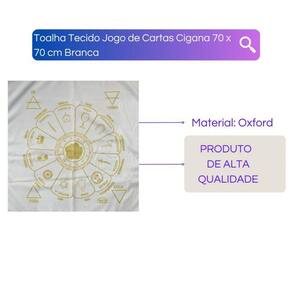 A Legítima Toalha Cigana P Jogos Cartas 70x70cm Branca A Verdadeira e Tradicional Toalha de Mesa Cigana para jogos de cartas e AltarEsta é a Legítima Toalha de Mesa jogos de cartas, deixando sua mesa bonita, moderna e sofisticada e intuitiva. Desenvolvida pensando em deixar o seu jogo de cartas mais confortável e prático.É composta por tecido, linda estampa, o que oferece ainda mais requinte ao teu jogo. Boa Qualidade de impressão, podendo ser utilizada em altares, desenvolvida especialmente para jogos de cartas intuitivas.- Impressão: Silk Screen- Composição: Tecido Oxford- Cor bem definida - Quadrada 70 cm x 70 cm- Extremamente leve, suave e confortável- Acabamento : Overlock - Lavável em máquina Lava e SecaImagens meramente ilustrativas Embalagem de Envio: Envelope plástico, conforme necessidade do produto. Respostas das dúvidas mais frequentes na ordem:R1: Já realizamos milhares de entregas em todo o Brasil, somos especialistas no que fazemos.R2: Assim que seu pedido for despachado, esta plataforma envia para você o código de rastreamento.R3: Enviamos o produto 100% inspecionado e conferido em nosso checkout e são embalados em embalagem de papelão e plástico bolha.R5: Iremos despachar o seu produto o mais rápido possível, assim que for confirmado pela plataforma, enviamos em até 24h.R6: Nós queremos a sua satisfação, qualquer problema iremos te auxiliar em nossos canais de comunicações. Marca: Meta Atacado
