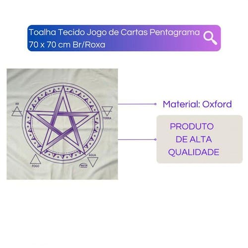 A Legítima Toalha Pentagrama Jogo de Cartas 70x70cm B Roxa A Verdadeira e Tradicional Toalha de Mesa Pentagrama para jogos de cartas e Altar Esta é a Legítima Toalha de Mesa jogos de cartas, deixando sua mesa bonita, moderna e sofisticada e intuitiva. Desenvolvida pensando em deixar o seu jogo de cartas mais confortável e prático.É composta por tecido, linda estampa, o que oferece ainda mais requinte ao teu jogo. Boa Qualidade de impressão, podendo ser utilizada em altares, desenvolvida especialmente para jogos de cartas intuitivas. Características: - Composição: Tecido Oxford- Cor bem definida - Quadrada 70 cm x 70 cm- Extremamente leve, suave e confortável- Lavável em máquina Lava e SecaImagens meramente ilustrativas Embalagem de Envio: Envelope plástico, conforme necessidade do produto. Respostas das dúvidas mais frequentes na ordem:R1: Já realizamos milhares de entregas em todo o Brasil, somos especialistas no que fazemos.R2: Assim que seu pedido for despachado, esta plataforma envia para você o código de rastreamento.R3: Enviamos o produto 100% inspecionado e conferido em nosso checkout e são embalados em embalagem de papelão e plástico bolha.R5: Iremos despachar o seu produto o mais rápido possível, assim que for confirmado pela plataforma, enviamos em até 24h.R6: Nós queremos a sua satisfação, qualquer problema iremos te auxiliar em nossos canais de comunicações. Marca: Meta Atacado