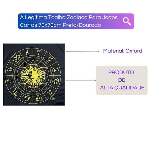 A Toalha Jogo de Cartas Zodíaco da Bialluz é ótima para te auxiliar durante o jogo de cartas, por ser um elemento que proporciona alta elevação enérgica. Você também pode usar para decorar seu altar, com certeza ficara ainda mais lindo e com muita energia positiva. Nossa toalha possui altíssima qualidade na impressão com pontos de brilho e é confeccionada em tecido oxford que não amassa e tem longa durabilidade.