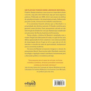 Um pilar das teorias sobre liberdade individual, Frédéric Bastiat sintetizou como poucos a importância deste conceito, seja pelo viés intelectual, seja por seus aspectos práticos. Publicado em 1850, A lei é um ensaio em defesa da autodeterminação e da propriedade privada. Influenciado por John Locke, tornou-se seu trabalho mais famoso. O economista francês afirma que a liberdade e a propriedade são direitos naturais. O Estado existiria para garantir esses direitos. Esse pensamento calcado na não intervenção do Estado faz com que Bastiat seja considerado um precursor da Escola Austríaca de Economia. Nesta edição, a defesa de Bastiat é ampliada com o ensaio Petição dos fabricantes de velas, no qual ele faz uma defesa apaixonada do livre-comércio e vai contra as tarifas de importação. Já em O que se vê e o que não se vê, ele introduz o conceito de custo de oportunidade, fundamental para a economia moderna. Os textos de Bastiat certamente integram o cânone do pensamento liberal. Suas teorias sobre liberdade comercial, tecnologia e regulação estatal contribuem imensamente para a discussão política e econômica até hoje. “Esta pequena obra é capaz de articular de forma cristalina e sintética diversos postulados essenciais à defesa da liberdade individual.” João Accioly, diretor da Comissão de Valores Mobiliários (CVM), cofundador do Instituto Millenium e do Instituto Livre Mercado, em prefácio para esta obra