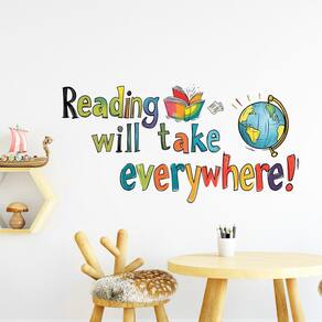 Material: PVC Tamanho: 29x69 cm 2 folhas, o tamanho total pode ser 90,5 x 45 cm Design vibrante: letras brilhantes e coloridas e ilustrações divertidas de livros e um globo, perfeitas para motivar jovens leitores e criar uma atmosfera inspiradora em qualquer ambiente. Inspira o aprendizado: a citação “A leitura o levará a todos os lugares!” incentiva o amor pela leitura e pela exploração, tornando-o ideal para creches, salas de aula e quartos infantis. Fácil aplicação: o design autoadesivo, peel-and-stick, permite uma aplicação e remoção sem complicações, sem deixar resíduos ou danificar suas paredes. Durável e seguro: feito de material de PVC ecológico e de alta qualidade, garantindo durabilidade e segurança nos espaços infantis. Tamanho perfeito: mede 29x69 cm por folha, com um tamanho total de 90,5x45 cm, tornando-o adequado para vários tamanhos e layouts de parede.