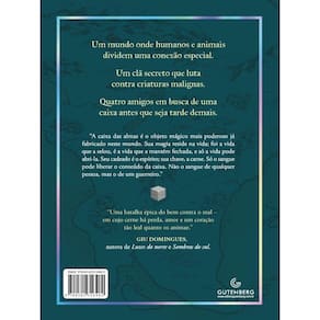 UM MUNDO ONDE HUMANOS E ANIMAIS DIVIDEM UMA CONEXÃO ESPECIAL. UM CLÃ SECRETO QUE LUTA CONTRA CRIATURAS MALIGNAS. QUATRO AMIGOS EM BUSCA DE UMA CAIXA MISTERIOSA, ANTES QUE SEJA TARDE DEMAIS. Como qualquer outro adolescente, Otto e Theo gostam de imaginar como serão seus animae. Qual animal surgirá para selar seus destinos e acompanhá-los pelo resto da vida quando atingirem a maturidade? Antes que isso possa acontecer, porém, os gêmeos partem em uma de suas habituais caçadas na Floresta Sombria e apenas um deles retorna. Anos depois, sem nunca ter perdido a esperança de encontrar o irmão, chega o momento de Theo se embrenhar na floresta à procura de seu anima. A espécie à qual o garoto se conecta surpreende a todos. Mais surpreendente ainda é o fato de Theo não conseguir enxergar seu destino com clareza, como deveria ser. Na calada da noite, um sujeito invade seu quarto e o convida para uma jornada sem volta, longe da família e da vila onde nasceu. Ele fará parte do Clã dos Guerreiros, um grupo secreto que protege o mundo de espectros, monstros e outros males desconhecidos pela maioria das pessoas. Para assumir seu papel, Theo terá de abdicar do passado e do próprio nome. O treinamento será árduo e, além de aprender sobre magia, combate e sobrevivência, precisará desvendar segredos sobre sua origem e outras lendas há muito esquecidas. A lenda da caixa das almas é uma fantasia fascinante e cheia de reviravoltas. Uma aventura épica sobre autoconhecimento e o poder da amizade. “Uma batalha épica do bem contra o mal – em cujo cerne há perda, amor e um coração tão leal quanto os animae.” Giu Domingues, autora de Luzes do norte e Sombras do Sul.