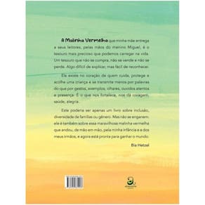 A Malinha Vermelha que minha mãe entrega a seus leitores, pelas mãos do menino Miguel, é o tesouro mais precioso que podemos carregar na vida. Um tesouro que não se compra, não se vende e não se perde. Algo difícil de explicar, mas fácil de reconhecer. Ela existe no coração de quem cuida, protege e acolhe uma criança e se transmite menos por palavras do que por gestos, exemplos, olhares, ouvidos atentos e presença. É o que nos fortalece, nos dá coragem, saúde, alegria. Este poderia ser apenas um livro sobre inclusão, diversidade de famílias ou gênero. Mas não se enganem: ele é também sobre essa maravilhosa malinha vermelha que andou, de mão em mão, pela minha infância e a dos meus irmãos, e agora está pronta para ganhar o mundo. Bia Hetzel