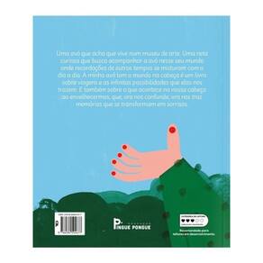 "Uma avó que acha que vive num museu de arte. Uma neta curiosa que busca acompanhar a avó nesse seu mundo onde recordações de outros tempos se misturam com o dia a dia. A minha avó tem o mundo na cabeça é um livro sobre viagens e as infinitas possibilidades que elas nos trazem. E também sobre o que acontece na nossa cabeça ao envelhecermos, que, ora nos confunde, ora nos traz memórias que se transformam em sorrisos."