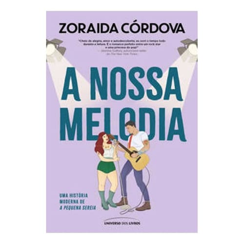 A nossa melodia é o terceiro volume da série Meant to be, escrito pela aclamada autora Zoraida Córdova. Ariel del Mar é uma das cantoras mais famosas do mundo. Ela e suas irmãs — conhecidas coletivamente como as Sete Sereias — têm sido um fenômeno da cultura pop desde muito novas. Nos palcos, usando sua peruca vermelha emblemática e figurinos com lantejoulas, e olhando para um mar de fãs, é onde ela brilha. Qualquer um pensaria que ela é a garota que tem tudo. Ultimamente, porém, ela quer mais. Contra os desejos de seu pai — o diretor da Atlantica Records —, Ariel sorrateiramente sai como uma promotora de merchandising anônima na turnê de verão de uma banda em ascensão, liderada pelo encantador vocalista Eric Reyes. Sem sua peruca e maquiagem característicos das apresentações, ela é irreconhecível até para si mesma, livre para enfim fazer parte do mundo real em seus próprios termos. Pela primeira vez na vida, ela pode fazer todas as coisas que uma “garota normal” faz, como lavar roupas, criar novas amizades e caminhar pela rua sem ninguém gritando seu nome. Em turnê com a banda, ela se lembra do que amava na música. Porém, enquanto Eric e ela se apaixonam um pelo outro, é apenas uma questão de tempo até que a verdade borbulhe até a superfície. Sobre a autora Zoraida Córdova é autora de mais de duas dúzias de livros, dentre os quais a série Brooklyn Brujas, Star Wars: The High Republic: Convergence e A herança de Orquídea Divina. Além de escrever livros, ela faz parte da diretoria da We Need Diverse Books e é coeditora da antologia best-seller Vampiros nunca envelhecem, além de ser co-host no podcast Deadline City, que fala sobre escrita. Zoraida nasceu em Guaiaquil, no Equador, e hoje chama de lar a cidade de Nova York. Quando não está trabalhando, ela está vagando pelo mundo em busca de histórias mágicas. Elogios “Esta história romântica e imersiva de dois músicos correndo atrás de seus sonhos — e se apaixonando ao longo do caminho — é uma mistura de A pequena sereia com Daisy Jones and the Six. Você vai querer fazer parte deste mundo!” — Alexis Daria, autora best-selller de Você me ganhou no olá “Irresistível! Os gracejos adoráveis e a química inegável nessa reimaginação de A pequena sereia vão fazer você se apaixonar por Ariel e Eric mais uma vez.” — Farrah Rochon, autora best-seller de The Hookup Plan “A nossa melodia é puro deleite. Cheio de alegria, amor e autodescoberta; eu sorri o tempo todo durante a leitura. Zoraida Córdova escreveu o romance perfeito entre um rock star e uma princesa pop!” — Jasmine Guillory, autora best-selller do The New York Times Da mesma série, leia também: Será que é o meu número?, Julie Murphy Amor entre livros, Jasmine Guillory Sobre Disney Consumer Products, Games and Publishing Disney Consumer Products, Games and Publishing (CPGP) traz a magia das marcas e franquias da The Walt Disney Company – incluindo Disney, Pixar, Marvel, Star Wars, National Geographic e mais – no cotidiano de famílias e fãs de todo o mundo por meio de produtos e experiências em mais de 100 categorias de varejo, de brinquedos e camisetas a aplicativos, livros, videogames e muito mais. Uma divisão do segmento de Parques, Experiências e Produtos da Disney, as operações globais da CPGP incluem: o maior negócio de licenciamento do mundo, uma das maiores marcas de publicações infantis, um dos principais licenciadores de jogos interativos entre plataformas, Store in Stores por toda a região, e o e-shop no disneylatino . com /shop e Disney . com . br/shop (disponível no Brasil, Colômbia e México). A nossa melodia é o terceiro volume da série Meant to be, escrito pela aclamada autora Zoraida Córdova. Ariel del Mar é uma das cantoras mais famosas do mundo. Ela e suas irmãs — conhecidas coletivamente como as Sete Sereias — têm sido um fenômeno da cultura pop desde muito novas. Nos palcos, usando sua peruca vermelha emblemática e figurinos com lantejoulas, e olhando para um mar de fãs, é onde ela brilha. Qualquer um pensaria que ela é a garota que tem tudo. Ultimamente, porém, ela quer mais. Contra os desejos de seu pai — o diretor da Atlantica Records —, Ariel sorrateiramente sai como uma promotora de merchandising anônima na turnê de verão de uma banda em ascensão, liderada pelo encantador vocalista Eric Reyes. Sem sua peruca e maquiagem característicos das apresentações, ela é irreconhecível até para si mesma, livre para enfim fazer parte do mundo real em seus próprios termos. Pela primeira vez na vida, ela pode fazer todas as coisas que uma “garota normal” faz, como lavar roupas, criar novas amizades e caminhar pela rua sem ninguém gritando seu nome. Em turnê com a banda, ela se lembra do que amava na música. Porém, enquanto Eric e ela se apaixonam um pelo outro, é apenas uma questão de tempo até que a verdade borbulhe até a superfície. Sobre a autora Zoraida Córdova é autora de mais de duas dúzias de livros, dentre os quais a série Brooklyn Brujas, Star Wars: The High Republic: Convergence e A herança de Orquídea Divina. Além de escrever livros, ela faz parte da diretoria da We Need Diverse Books e é coeditora da antologia best-seller Vampiros nunca envelhecem, além de ser co-host no podcast Deadline City, que fala sobre escrita. Zoraida nasceu em Guaiaquil, no Equador, e hoje chama de lar a cidade de Nova York. Quando não está trabalhando, ela está vagando pelo mundo em busca de histórias mágicas. Elogios “Esta história romântica e imersiva de dois músicos correndo atrás de seus sonhos — e se apaixonando ao longo do caminho — é uma mistura de A pequena sereia com Daisy Jones and the Six. Você vai querer fazer parte deste mundo!” — Alexis Daria, autora best-selller de Você me ganhou no olá “Irresistível! Os gracejos adoráveis e a química inegável nessa reimaginação de A pequena serei